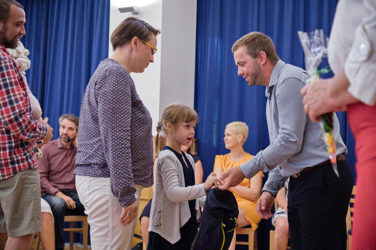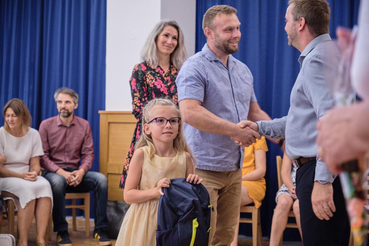 Paní starostka srdečně přivítala 34 dětí, které letos poprvé usedly do školních lavic. Přejeme všem prvňáčkům, aby se jim ve škole líbilo.